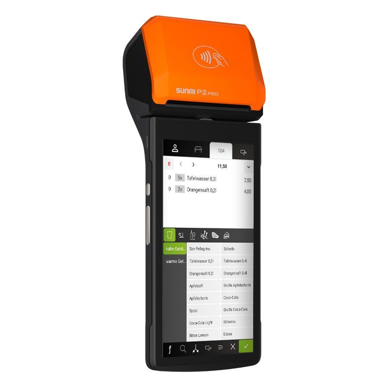 Wir haben Handterminals der Firma Orderman und auf Android-Basis. Orderman-Systeme basieren auf einem eigenen (nicht WLAN-abhängigen) Funksystem und arbeiten in funktechnisch schwierigen Umgebungen zuverlässig.